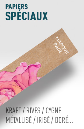 L'impression de vos marque-pages et signets : nous imprimons vos propres créations au format 5x20cm ou au format 5x15cm.